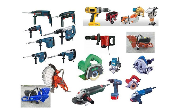 Taladros, Roto martillos, amoladoras, alicates, desarmadores